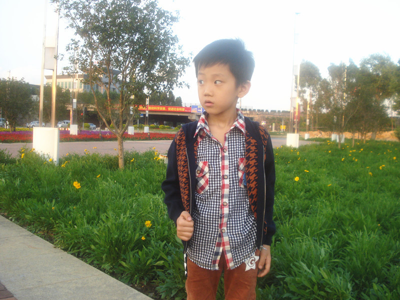 專業訂做藍雙色提花男童純棉毛衣(高清大圖)連帽針織衣開衫