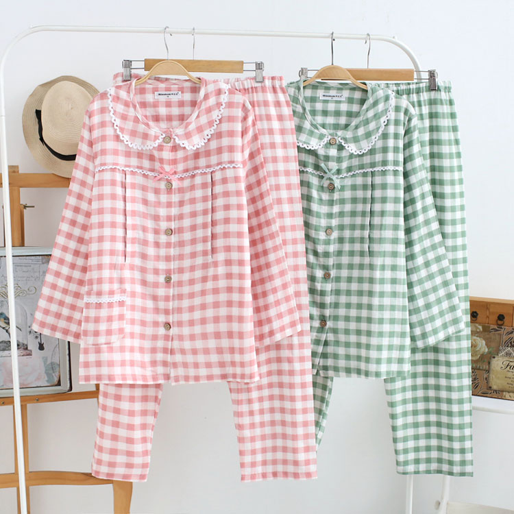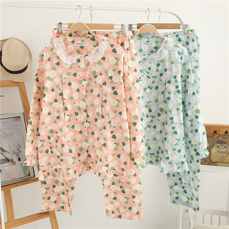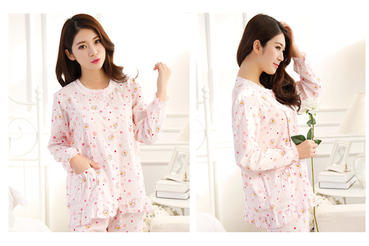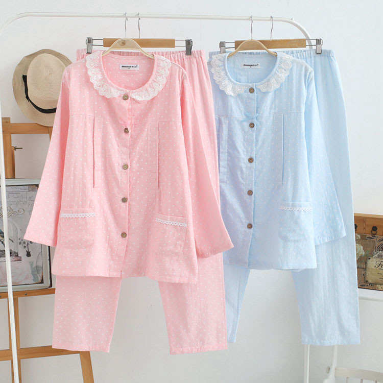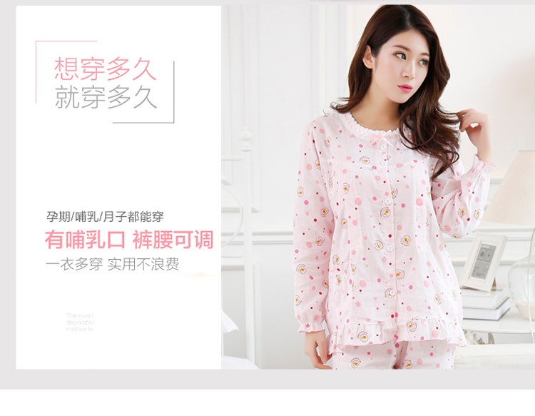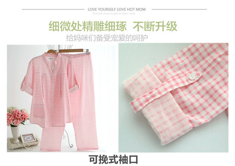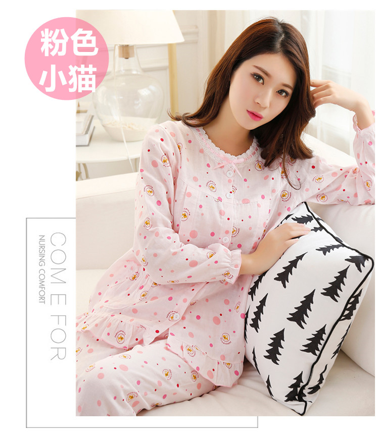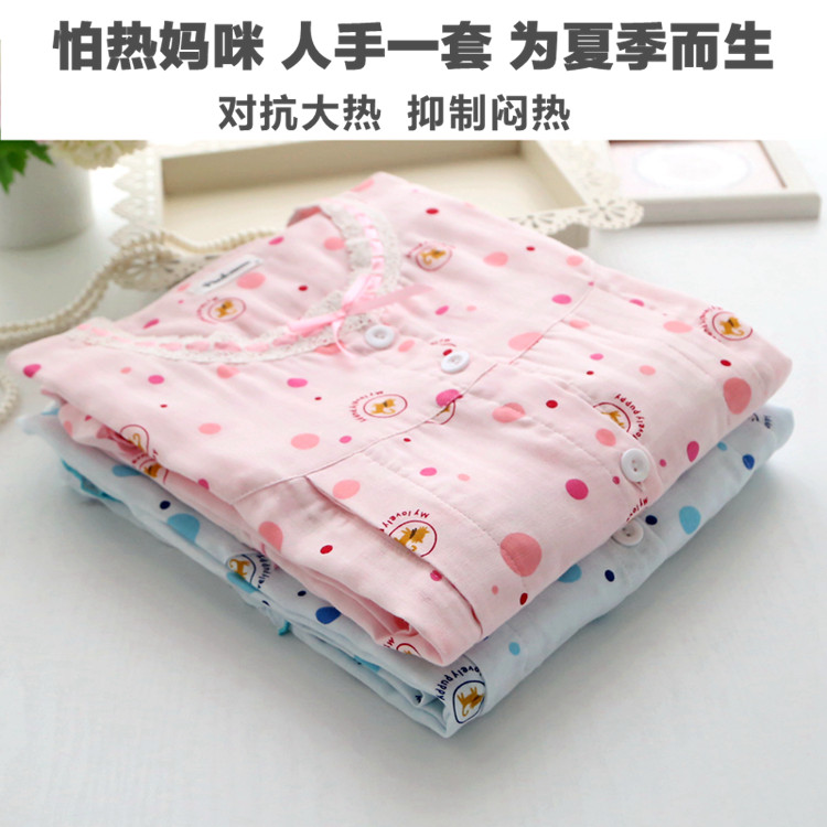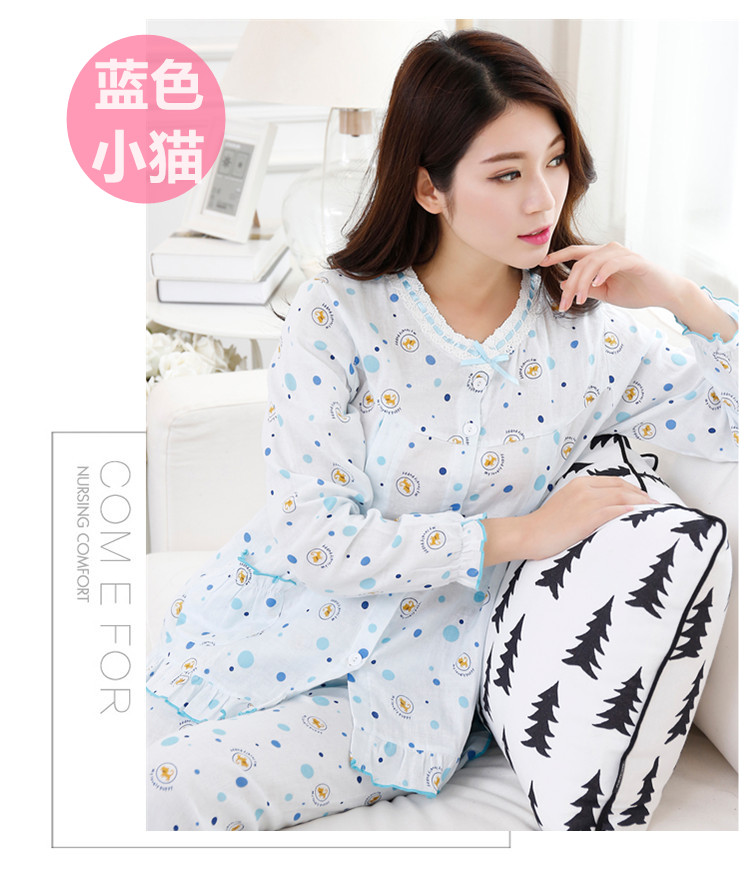 本店的紗布月子服均采用高密度精細雙層紗布面料漿合,吸汗,透氣。所有的款式均有隱蔽性哺乳口,采用隱蔽紐扣式封閉,不是孕媽媽的也可選用哦。從外面看不到哺乳口的呢。褲腰均為可調節的松緊帶。產前可做睡衣,產后可做月子服。