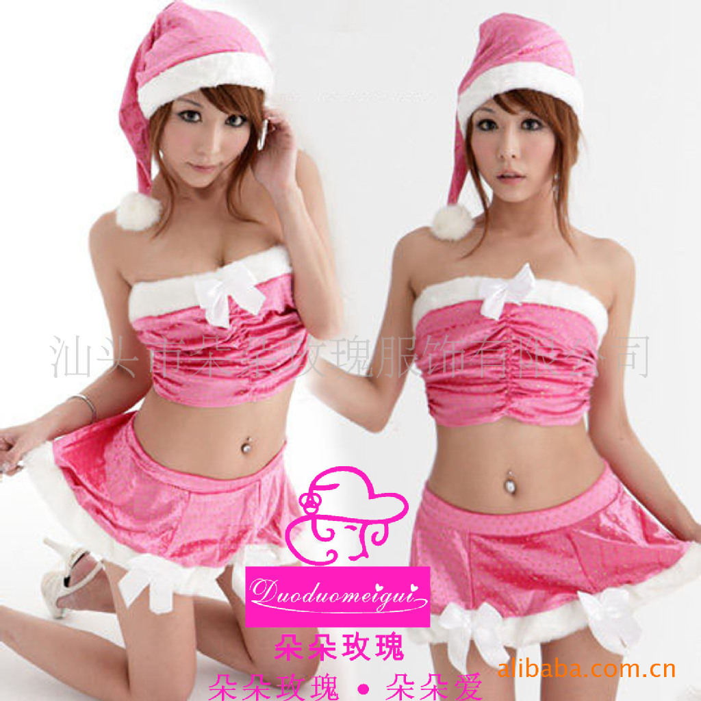 性感仿真絲,游戲制服嫵媚圣誕裝,性感無極限玫色露背鏤空情趣圣誕裝