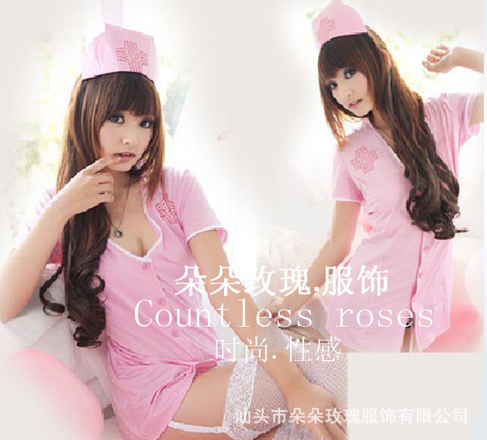 超級性感護士裝,游戲服仿皮絨,麂皮絨, 時尚性感情趣制服粉紅色AV小姐性感萬圣節服