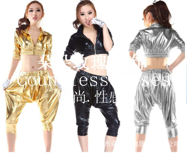 燙金面料夜店性感表演服,透視