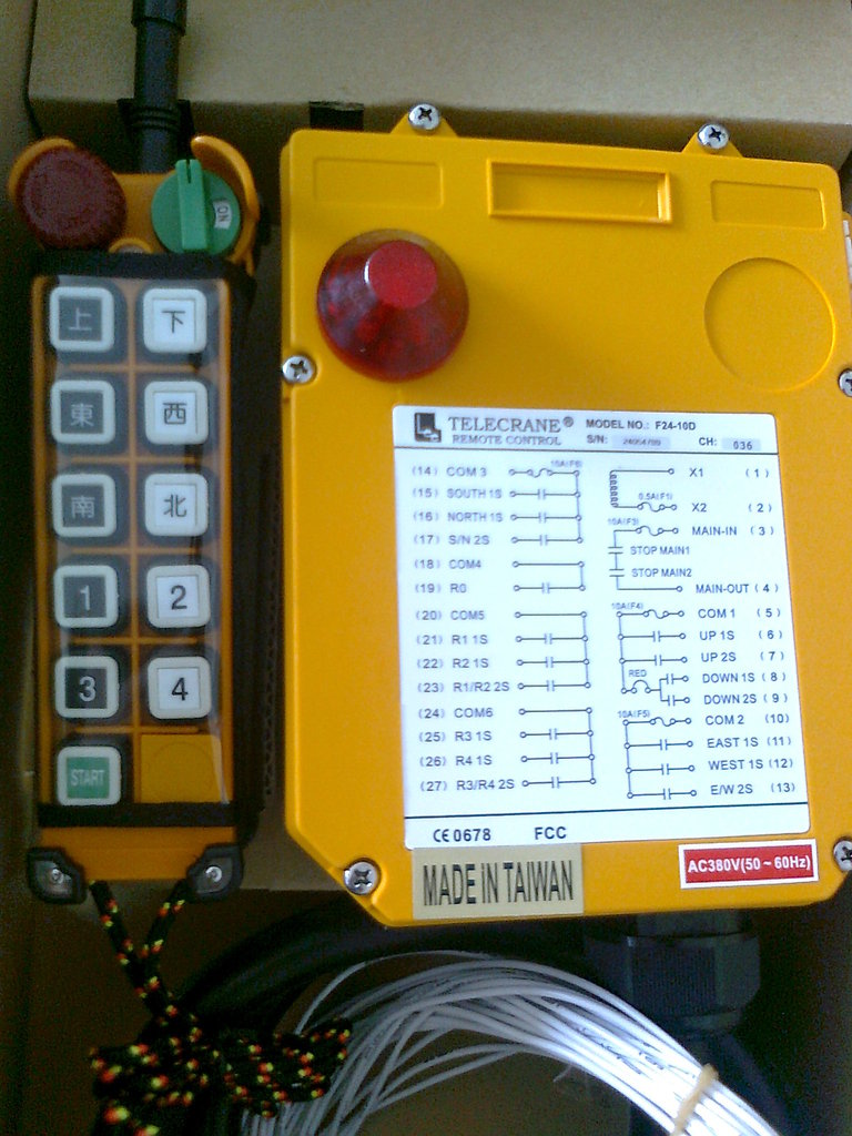• 起重機、行車。液壓吊車,混凝土泵車,過山車,采礦機械,天車,大吊車,翻斗車,吊裝機車,起吊機等遙控距離