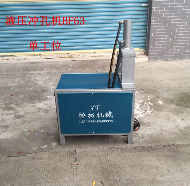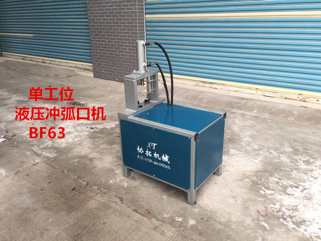 佛山市協拓機械研發的新型不銹鋼管液壓沖孔機一機可以設計1-5個工位,同時可以裝1-5套模具??缮a各種新型防盜網(菱形防盜網、梅花管防盜網、圓管方管防盜網,亦可以做門花等)。樓梯扶手、護欄的弧形口可以一沖成型,無需再經任何加工。是不銹鋼加工戶和管材代理商戶最理想的加工設備。整體自動校正沖孔模具自帶刻度尺定位桿,沖孔不需要畫線。一天可沖管材300條或防盜網400—500個平方??扇我庹{節對穿孔、單面孔,裝卸模具快速,簡單方便。技術含量低,新手容易上手。液壓沖孔機廣泛應用于不銹鋼管、鋁合金型材、鋅鋼護欄、鐵管等五金制品的沖孔加工??蔀榭土可矶ㄗ龈鞣N機械設備。