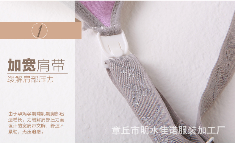 由于孕媽孕期哺乳期胸部迅速增長,為緩解背部壓力而設計的寬肩帶文胸,舒適不緊勒,無壓迫感。