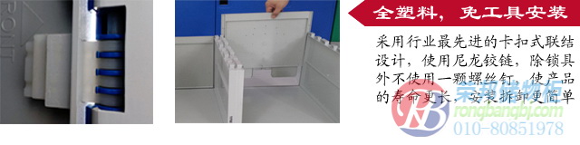 北京榮邦塑料更衣柜具有優良的綜合性能,環保無毒無味、耐高溫、防腐、防潮、防蛀、抗寒、抗化學藥品、耐水,完全解決了木制、鐵制、鋼制柜長期以來一直被潮濕、腐蝕、生銹、使用壽命短所困擾的大難題。