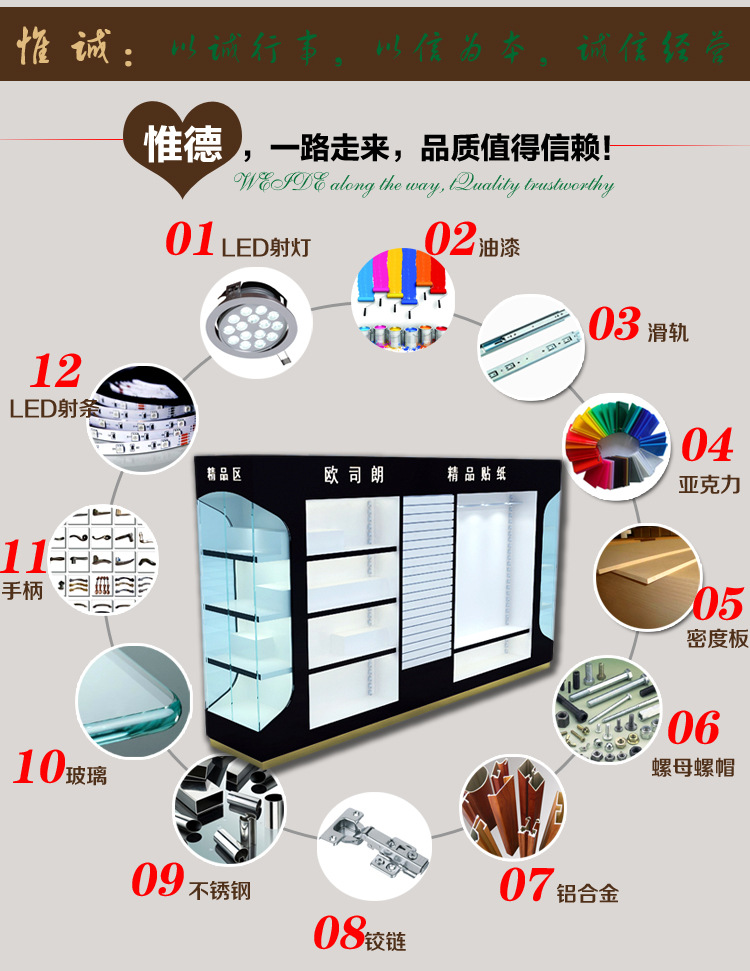 1.專賣店展柜;2.化妝品展柜;3.珠寶展柜;4.服裝展柜;