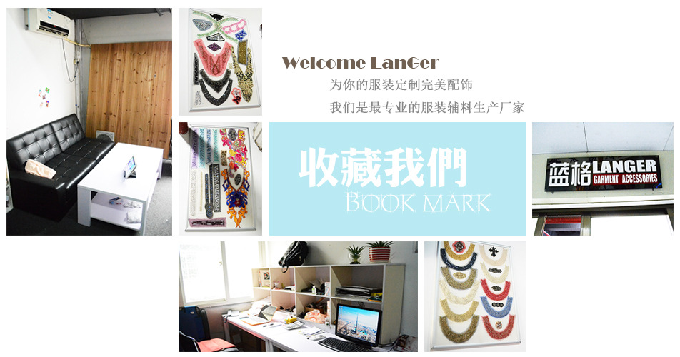 廣州市海珠區藍格服飾加工廠(蘭格工坊)位于服裝服飾商貿集散地—花城廣州。是一家從事服裝輔料及手工飾品生產銷售為一體的專業企業,長期以來積累了豐富的實踐經驗,具有自主生產的基礎設施,公司產品主要有:電腦繡花、腰帶、手工衣領、手工項鏈、頭花、胸花、手工穿珠、手鉤衣領及各種服裝輔料和手工飾品。