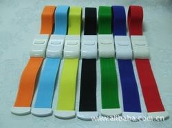 本公司生產的止血帶主要由彈性帶(扁形彈性松緊帶),ABS塑料件(扣盒,插件,手柄)組成。分為:成人型和兒童型兩大類,采用扁型的棉線維彈性帶,較傳統使用的橡皮管,使單位壓力下壓強大大減小,達到了適度壓迫,減小了病人的不適感和痛感。用于人體靜脈血樣采集過程或靜脈輸液,輸血,采血進行靜脈穿刺時使用。本產品操作簡單,使用方便