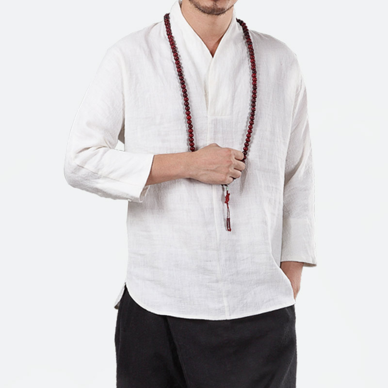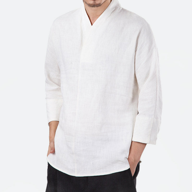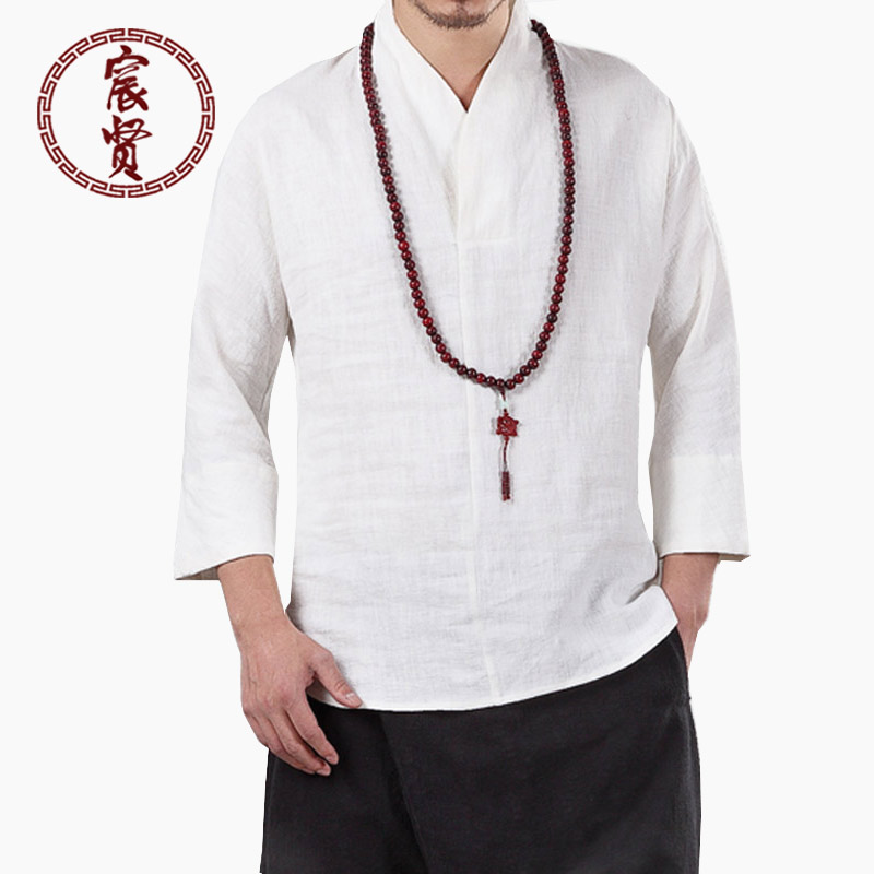 • 產品名稱宸賢秋季批發新款中國風亞麻襯衣套頭外衣修身唐裝漢服中式男式襯