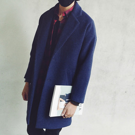 原創港風男裝 韓國百搭羊毛呢大衣厚外套男