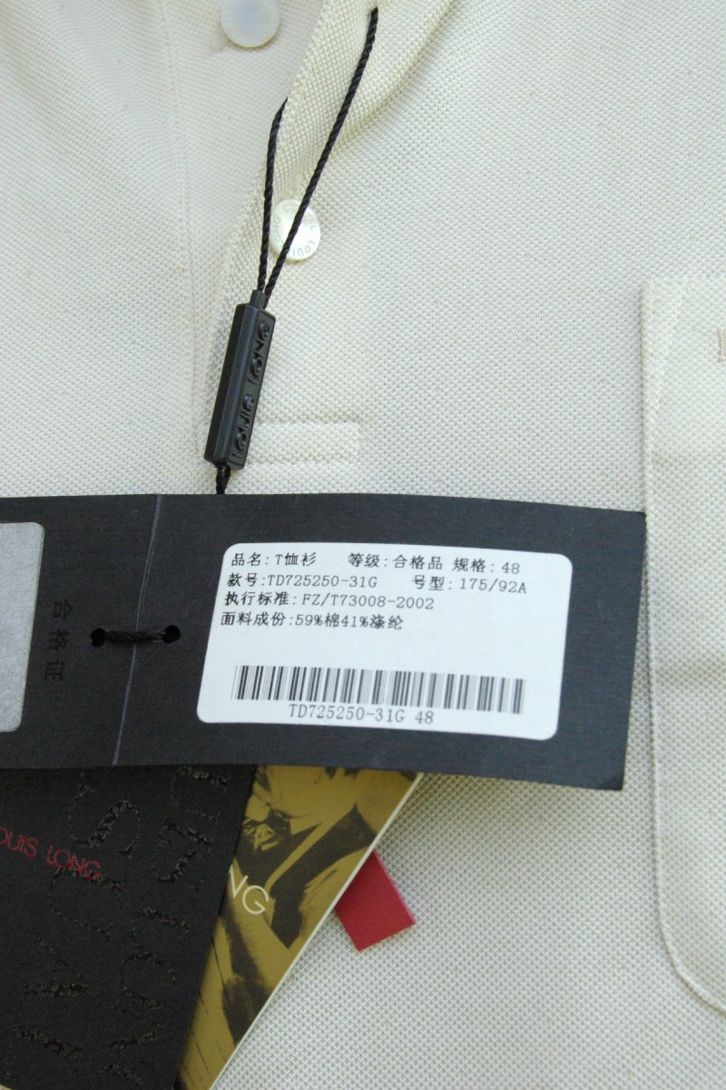 正品路易詩蘭LOUIS LONG男裝短袖T恤淺米黃男T短袖