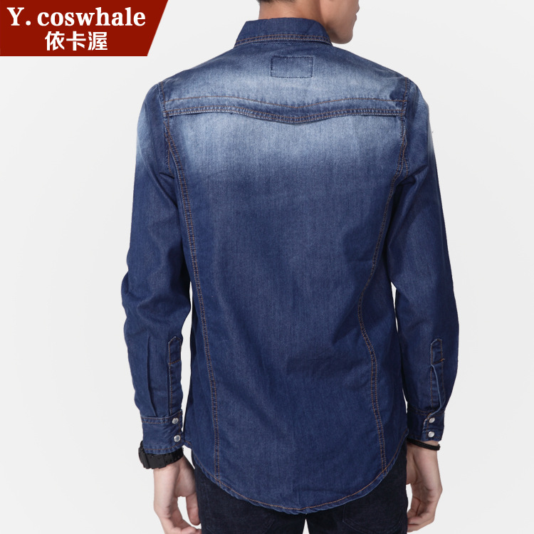 2014男 秋冬 新品牛仔長袖襯衫 男士牛仔襯衣 牛仔外套 限時熱銷6.0折大促原價75.00¥45.00