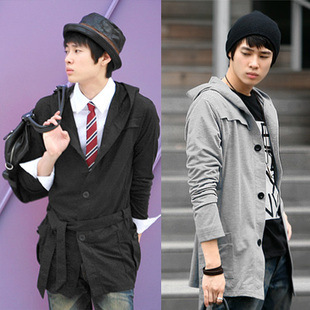 外貿批發 氣質型男演繹 連帽中長款開衫衛衣 男士 小外套 6255