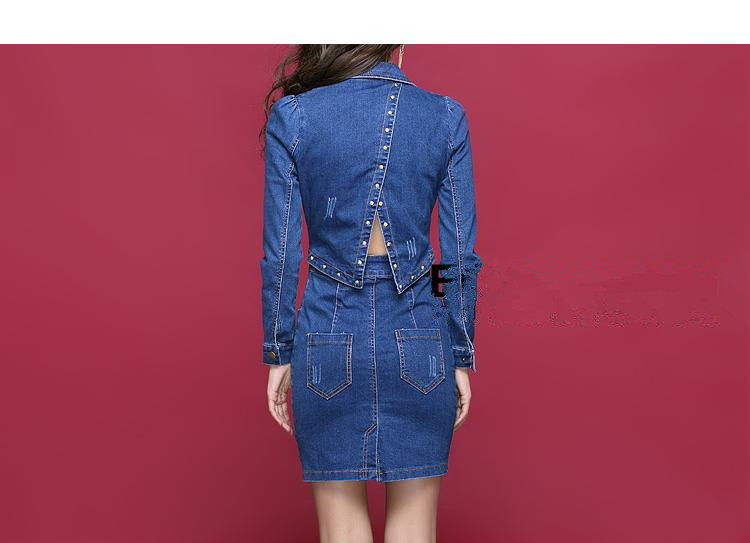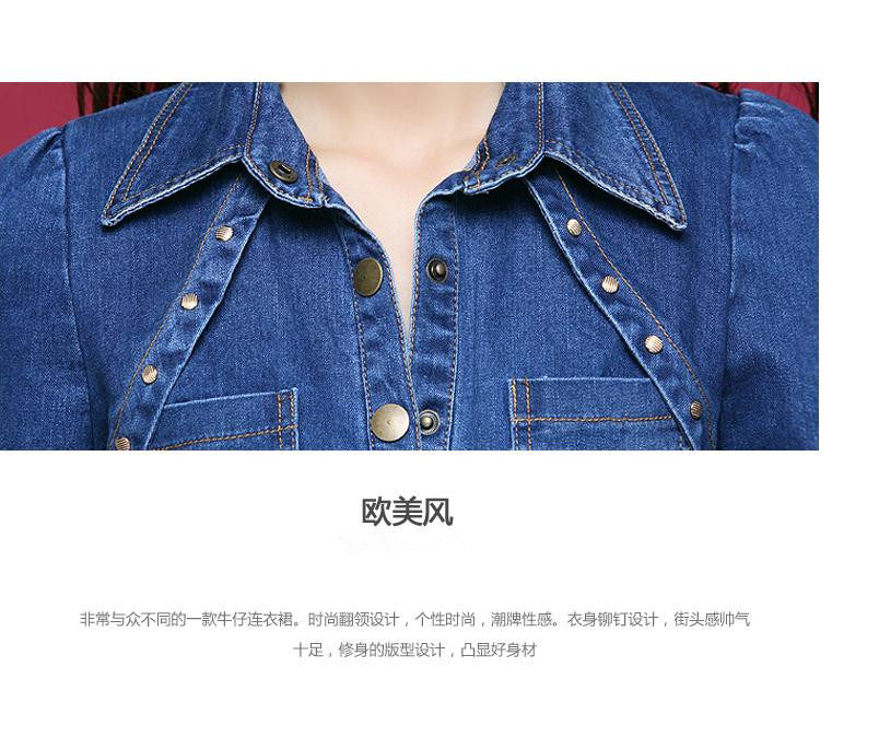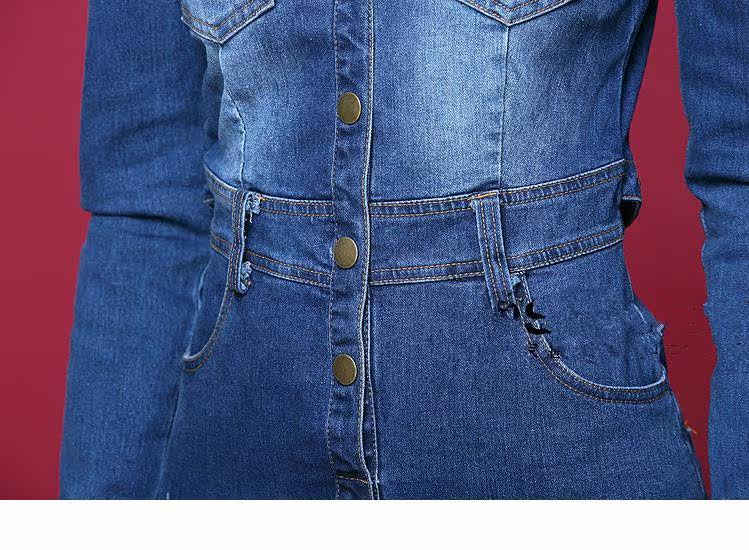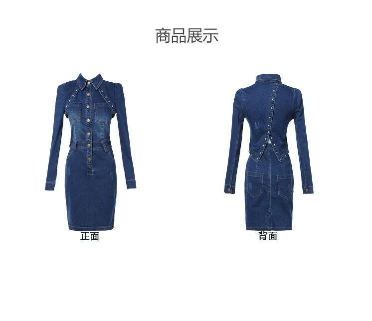 2015新款歐美風性感開叉露背鉚釘貓爪牛仔連衣裙