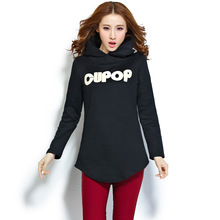 2015新款加厚加毛帶帽中長衛衣大衣 大碼女裝 潮 一件代發71.00