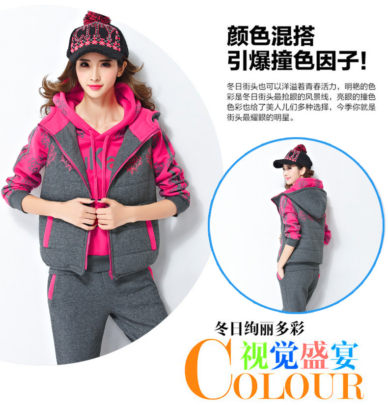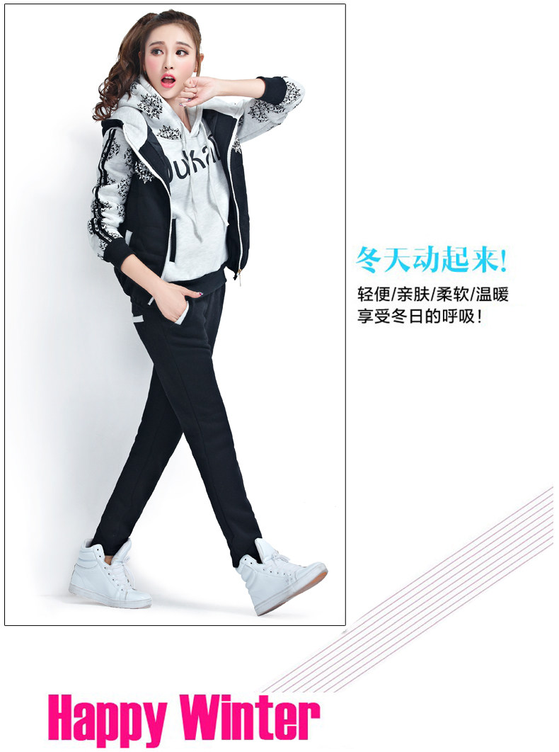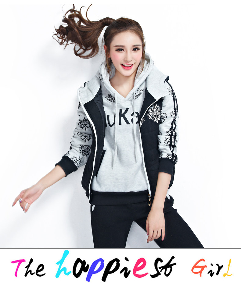 模特實拍韓版新款加厚大碼女裝 學生裝 修身顯瘦三件套衛衣124.00