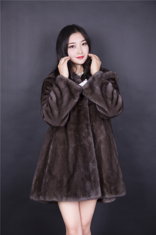 (款二)同樣采用分刀工藝,咖色貂皮彰顯極簡風尚,善于用優雅的態度詮釋對時尚的理解,在華麗的表象下,享受簡約的感覺;