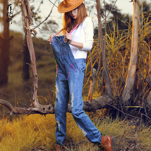 新品試銷 背帶褲寬松吊帶褲歐美風2014秋季新款女式牛仔褲創意款¥:72.00