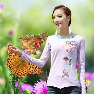 廠家直銷新款品質民族風長袖T恤彈力純棉繡花女式打底衫特價 促銷29.0 ¥29.0熱銷0