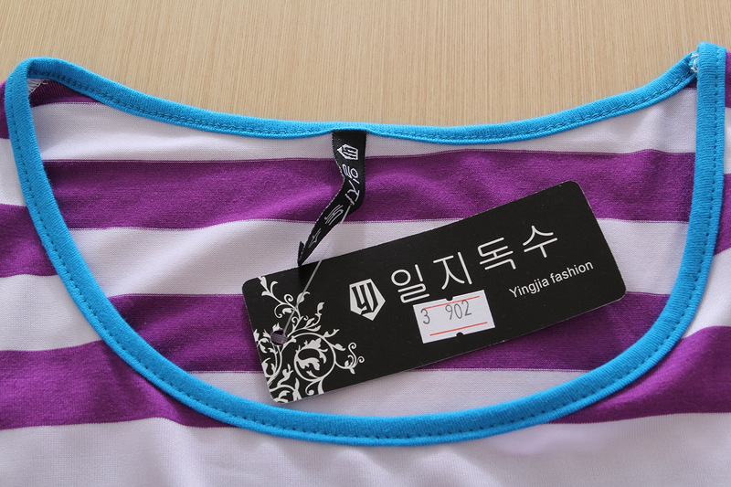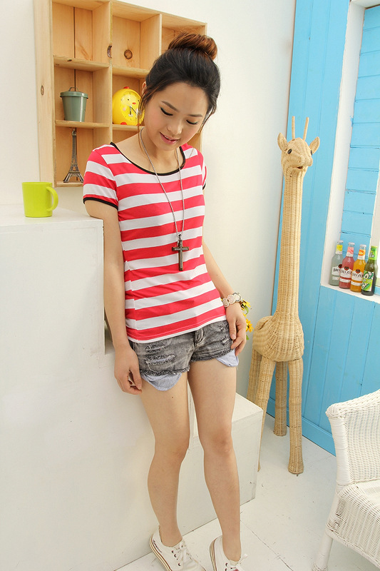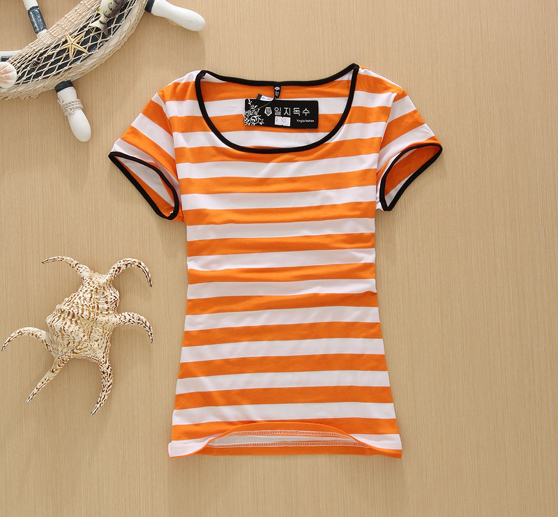淘寶爆款純棉圓領女式短袖條紋T恤 打底衫批發 一件代發條紋冰絲T