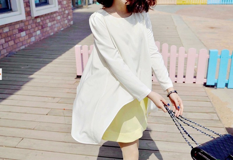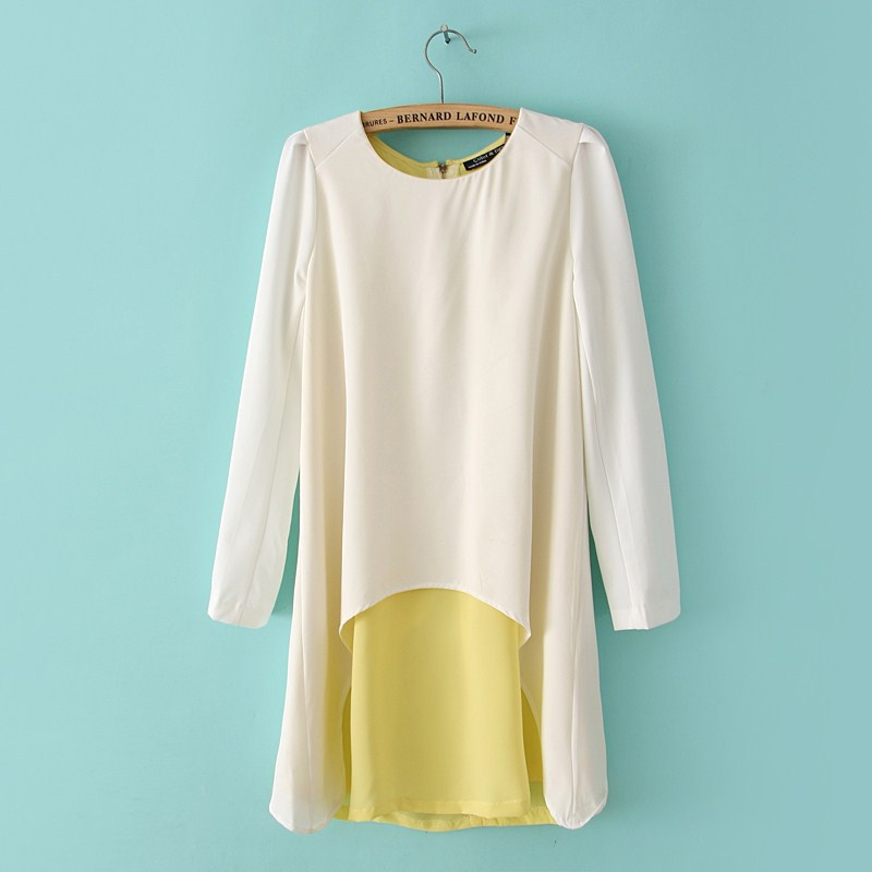 2013秋裝新品女式假兩件套寬松休閑長袖雪紡衫女士韓版女裝
