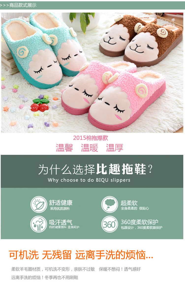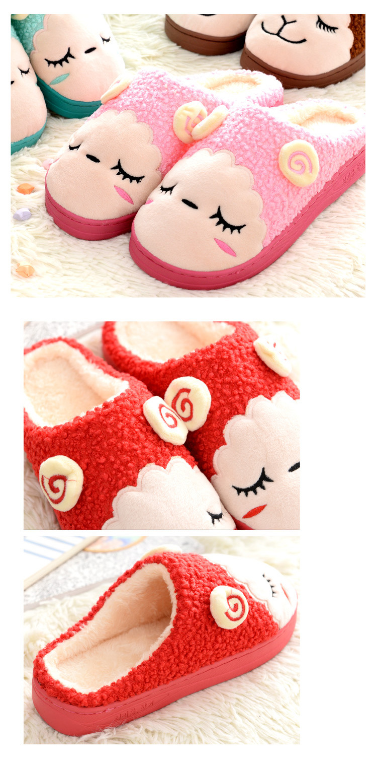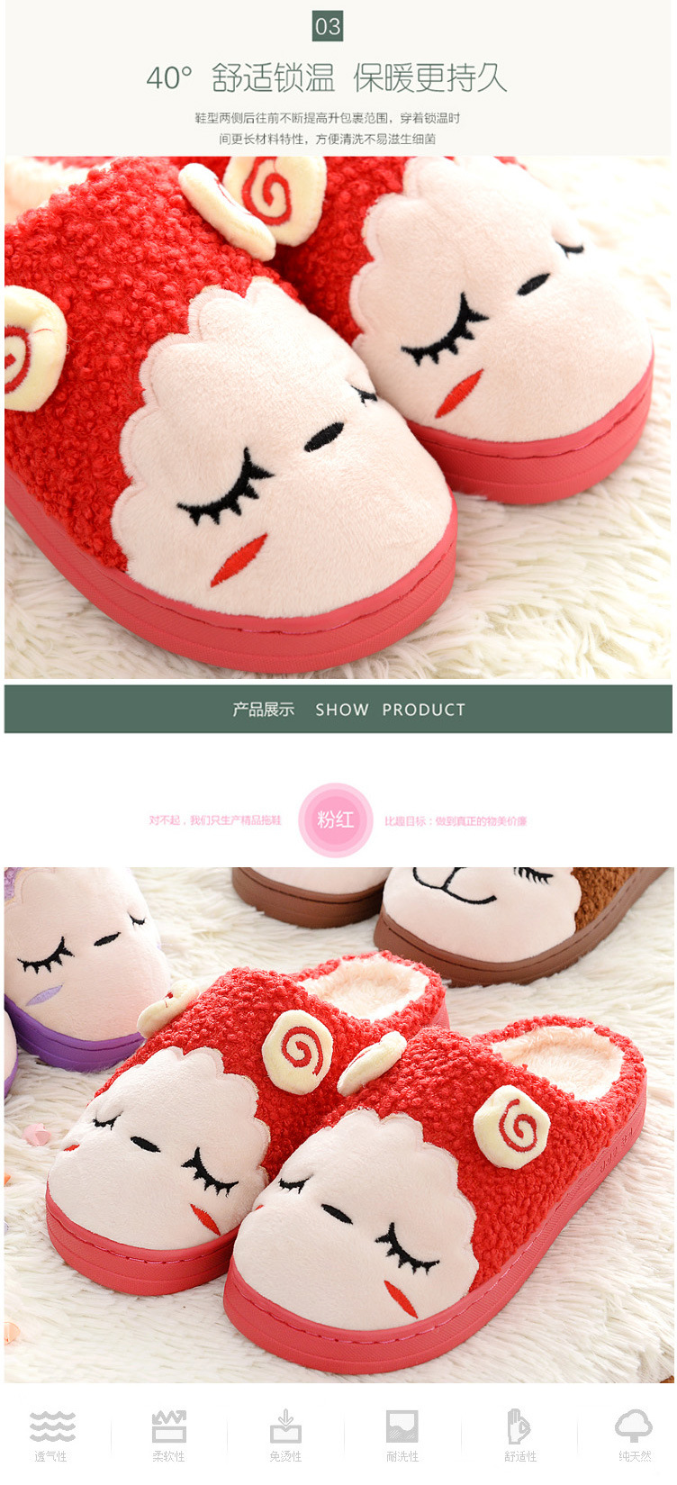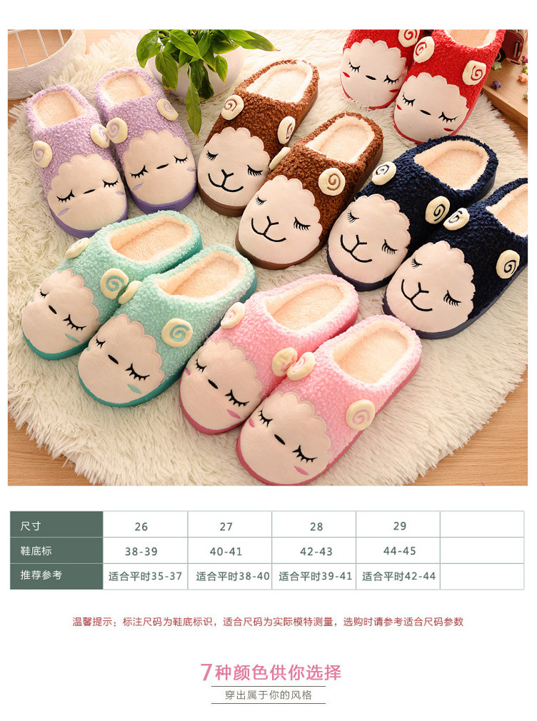A秋冬新品 瞇眼小綿羊室內家居拖鞋 羊羔絨球球情侶棉拖鞋26.00