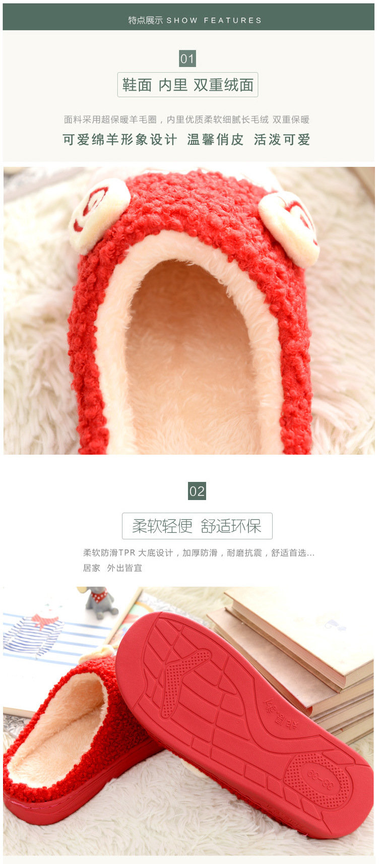 9955秋冬季棉拖鞋男女情侶包跟厚底鞋保暖居家居卡通月子毛拖鞋11.00