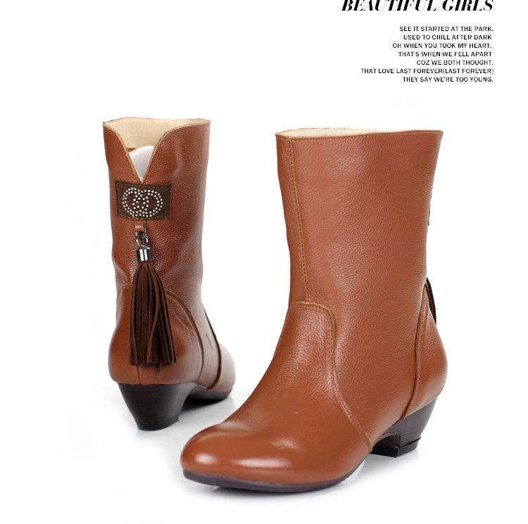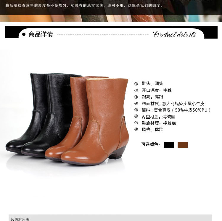 專業供應高品質圓頭高跟女式皮鞋 優雅高檔中靴皮鞋 顏色可選