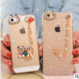 ¥6.50掛鏈裝飾手機殼 蘋果6/6plus創意手機殼 蘋果4 5s貼鉆手機保護套