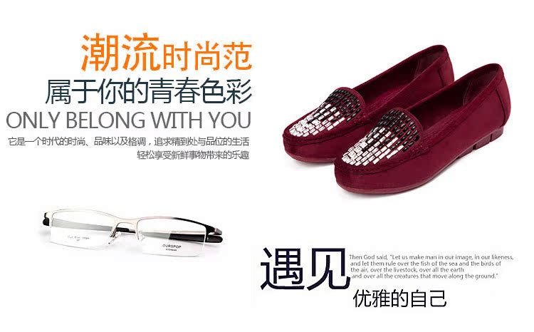 時尚韓版休閑鞋單鞋 女士豆豆鞋亮鉆時尚老北京布鞋平跟女
