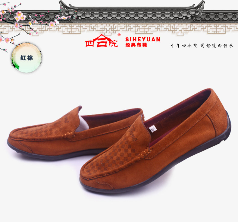 貨號:79252幫面:麂皮絨布面,舒適養腳品牌:四合院內里材質:棉布風格:休閑鞋底材質:高檔橡膠大底 耐磨,防滑穿著場合:日常休閑閉合方式:套腳顏色分類:紅棕 黑色款式:老北京布鞋適合季節:春秋功能:透氣 防臭 柔軟舒適鞋碼提示:此款鞋碼 正常碼號寶貝買點:經典楦型 休息商務都是百搭之選