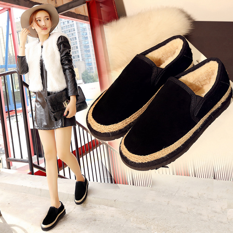 秋冬休閑女士保暖加絨軟底平底單鞋豆豆鞋女士軟底鞋棉鞋女鞋