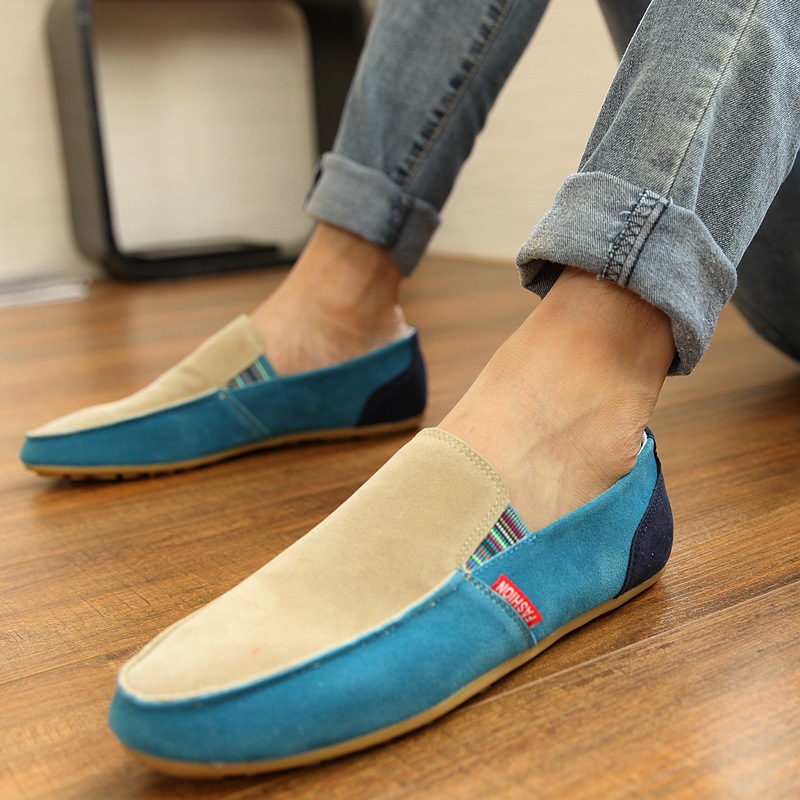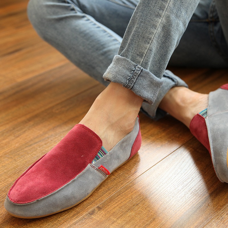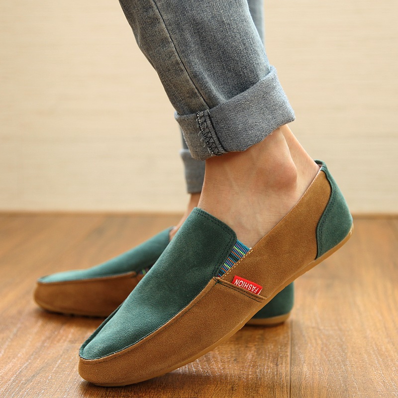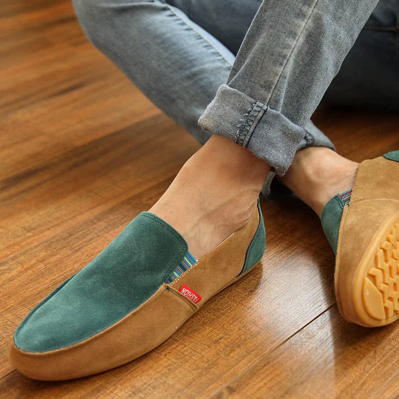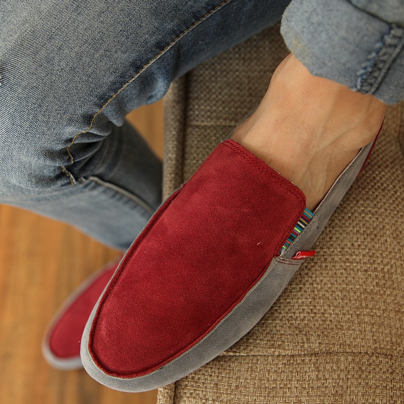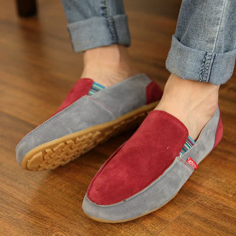 【超值豆豆鞋】夏季新款拼色磨砂皮板鞋套腳懶人鞋潮韓版時尚男鞋