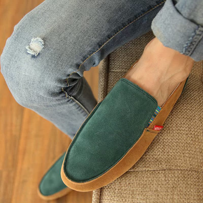 【超值豆豆鞋】夏季新款拼色磨砂皮板鞋套腳懶人鞋潮韓版時尚男鞋.