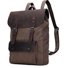 百約男式帆布帶皮飾雙肩包休閑旅行包中學生復古書包廠家代發