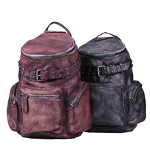 2015新款真皮書包皮帶裝飾 鉚釘雙肩包頭層牛皮復古背包一件代發