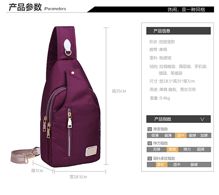 新款女士胸包防水尼龍多功能單肩斜跨運動包戶外男女包包可
