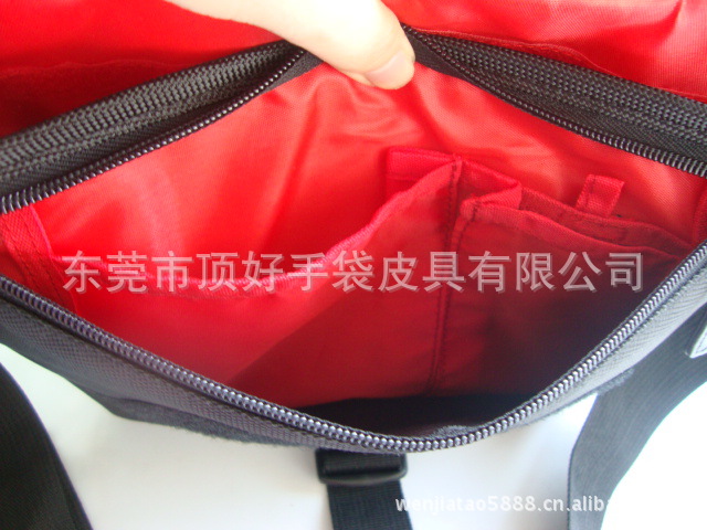 拉鏈頭開合,側邊有條活動單肩帶,肩帶有肩墊