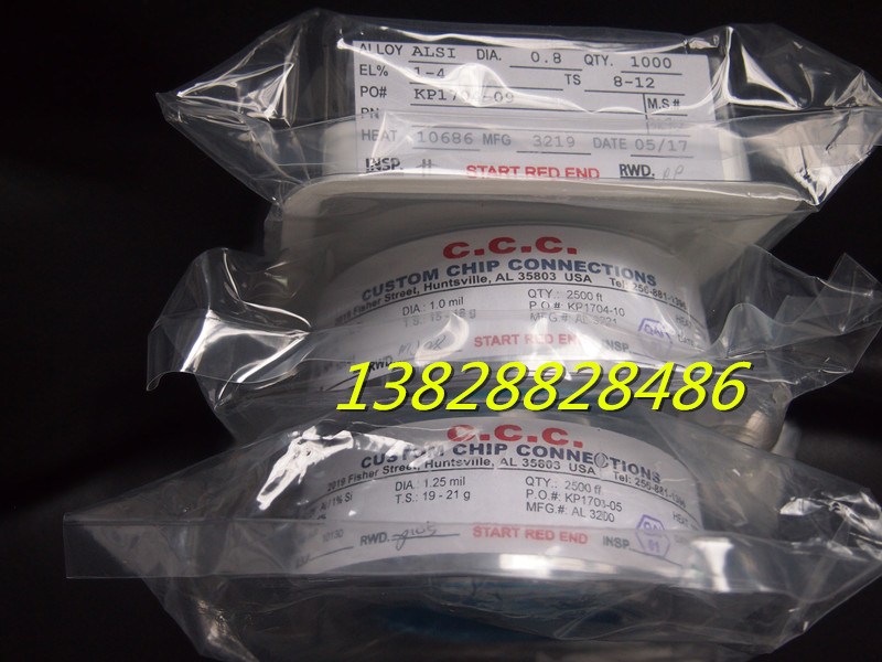 我司供應進口CCC鋁線, LED邦定硅鋁線 ,規格齊全:0.8MIL(1K/卷)、1.0MIL(2.5K/卷)、1.25MIL(2.5K/卷),均為56卷/箱,品質有保證,本司鄭重承諾正品原裝,最小訂量不限,全國各地可以發貨,歡迎咨詢。