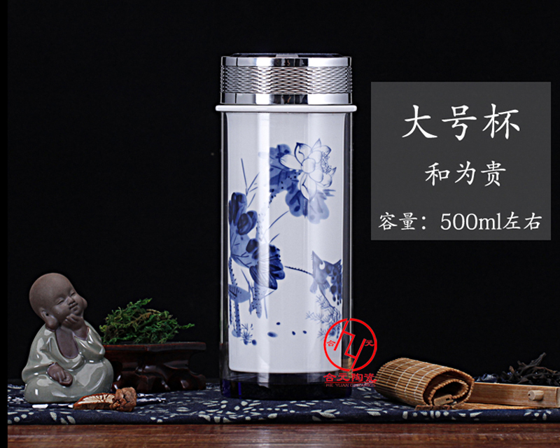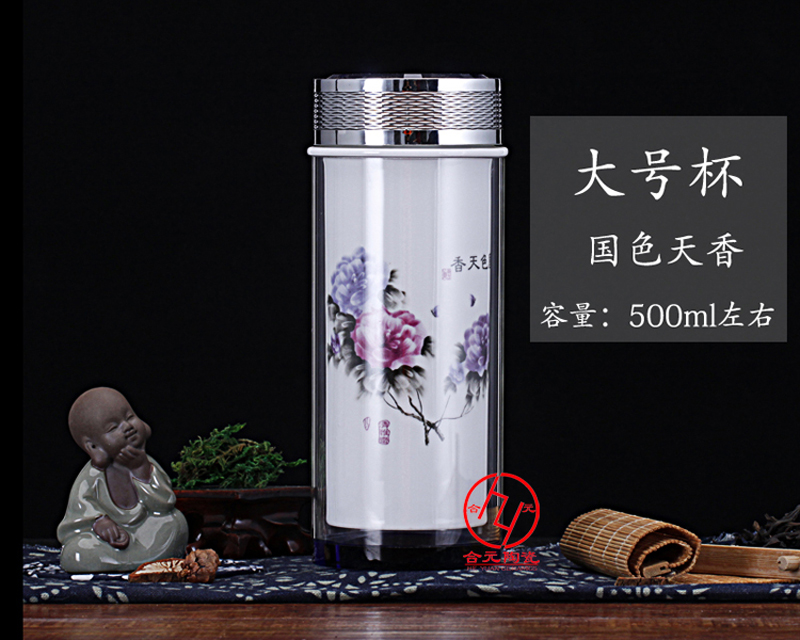 景德鎮市合元陶瓷有限公司專業生產陶瓷保溫茶杯,不僅注重外觀精美,更有良好的品質保證。陶瓷保溫茶杯還可以滿足你私人訂制的想法,在茶杯上面可以印制任何文字、logo、圖案等。合元陶瓷生產的陶瓷保溫茶杯都是經過1380度高溫燒制,對人體無害、健康環保。讓你在享受溫度的同時還能擁有身心健康,陶瓷保溫茶杯是居家、商務饋贈佳品。