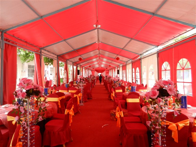 陜西婚慶(帳篷)大蓬廠家,周至喜宴帳篷租賃,西安啤酒大蓬出租,亞太篷房(常州)制造有限公司是一家專業從事篷房業多年的老牌公司。經過多年的設計開發,在完善傳統人字形篷房的基礎上,經過我們的努力,公司已先后開發出了聯體篷房(蓬房規格能做50米跨度咨詢熱線)、尖頂篷房(可以根據尺寸定做)和異型篷房、膜結構篷房等四大系列多品種的產品,亞太篷房穩固安全、美觀大方、裝拆快捷、儲運方便,被廣泛運用于展覽會、博覽會、產品推廣促銷、慶典禮儀、婚慶聚會、體育賽事會動、節慶活動(藝術節,啤酒節,美食節...)、臨時倉庫、車間和緊急救援等戶外臨時活動。加上完善的配套設施,如篷內天花布幔、ABS硬體墻、玻璃墻、玻璃門、空調、木地板、地攤和舞臺燈光音響設施,使篷房的應用功能更加完善。精致的外觀和優質的服務,作為一種先進的戶外臨時建筑,不斷為客戶創造無限的高雅空間。篷房采用高強度輕質鋁合金材料作為結構支架,篷布采用進口雙面PVC涂層的合成纖維篷布,具有抗風、自潔、防水、防火、防紫外線的良好性能,安全可靠性完全達到國外同類產品的標準,抗風能力可達到100公里/小時(10級)。我們的篷房儲備資源豐富,有可靠的質量安全性能,產品遠銷亞、非、歐、美,深受國內外用戶的歡迎。