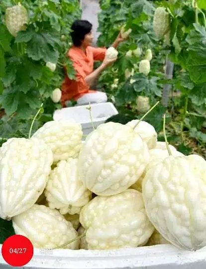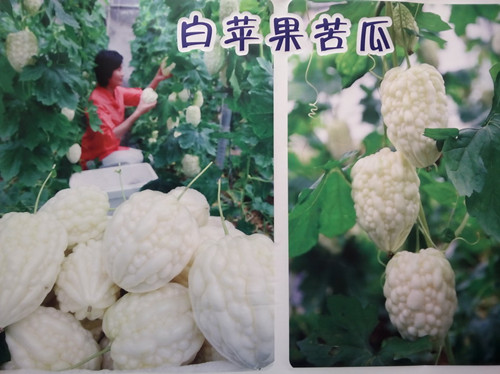 臺灣新育成蘋果苦瓜品種,外形如蘋果,晶瑩剔透,讓人愛不釋手,生吃苦中帶甜,冰鎮后更甜,有水梨般爽脆多汁的口感,吃過這種苦瓜就不愿再吃其他品種的苦瓜了,由于口感好,不用開水焯,食用方便,必將帶來苦瓜革命性的更新換代。