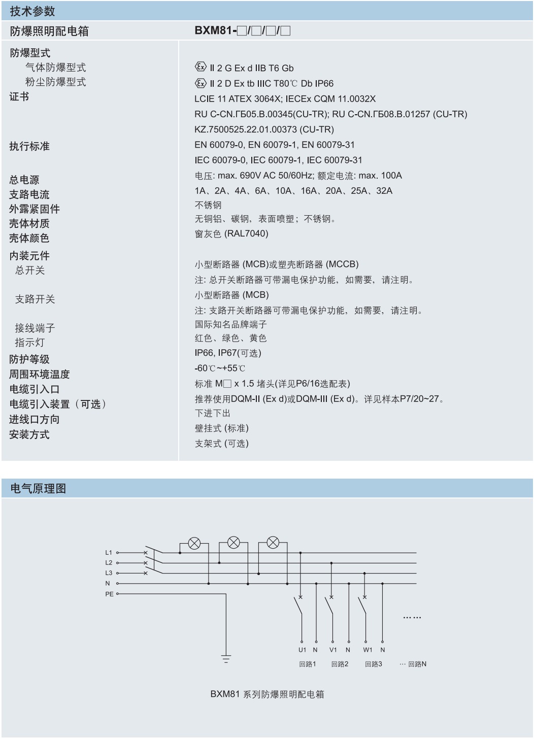 BXM(D)81防爆照明動力配電箱技術參數