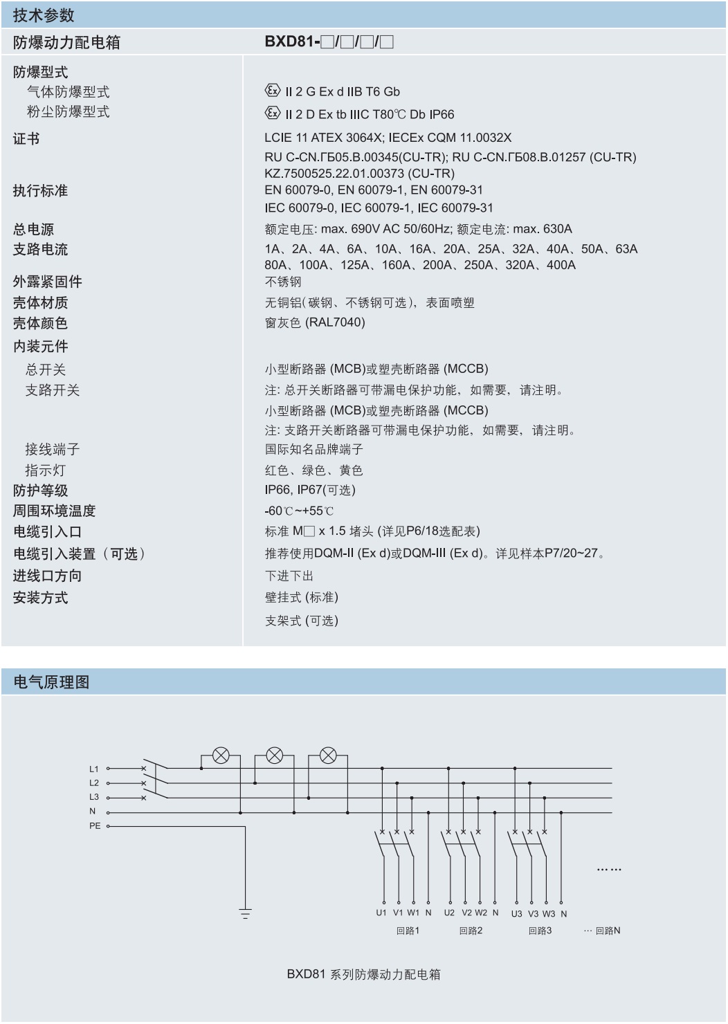 本防爆配電箱為全隔爆型結構(Ex d IIB)。