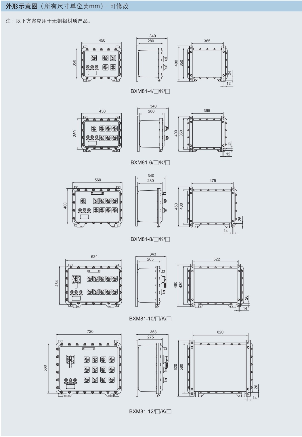 BXM(D)81防爆照明動力配電箱外形示意圖