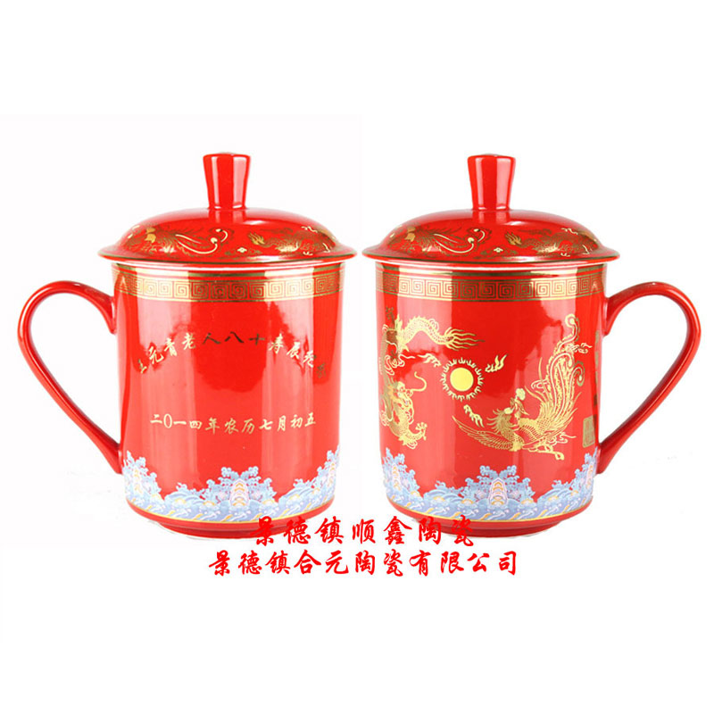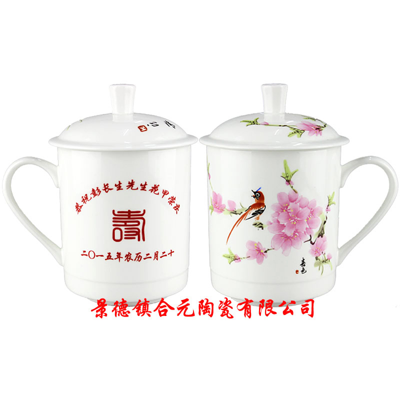 景德鎮市合元陶瓷有限公司專業定做禮品壽杯廠家,壽誕禮品的生產,是采用優質的高嶺土,經過1380度的高溫燒制而成。廠家定做禮品壽杯,在質量和工藝上都是經過嚴格的把關。讓客戶在定做壽誕禮品之后,能夠覺得這個錢沒有白花,同時更能表達出晚輩都長輩感激之情,更注重定做禮品壽杯的每一個細節。廠家定做禮品壽杯可以根據客戶的來樣定制,還可以在壽杯上添加任意logo、文字、照片等。定做禮品壽杯款式多樣,不僅透露出簡單、大方、高檔,更能體現出對長輩孝心。公司主要生產誕辰禮品、定做禮品壽杯、壽誕禮品擺件瓷盤、壽誕禮品花瓶 、壽誕禮品瓷板、 陶瓷壽碗 、壽誕禮品茶具 、壽誕禮品酒具等等。