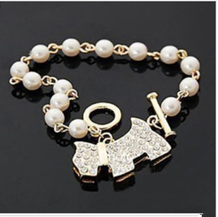 韓版飾品批發 特價 女式經典首飾 滿鉆閃亮珍珠小狗手鏈L-026¥2.50