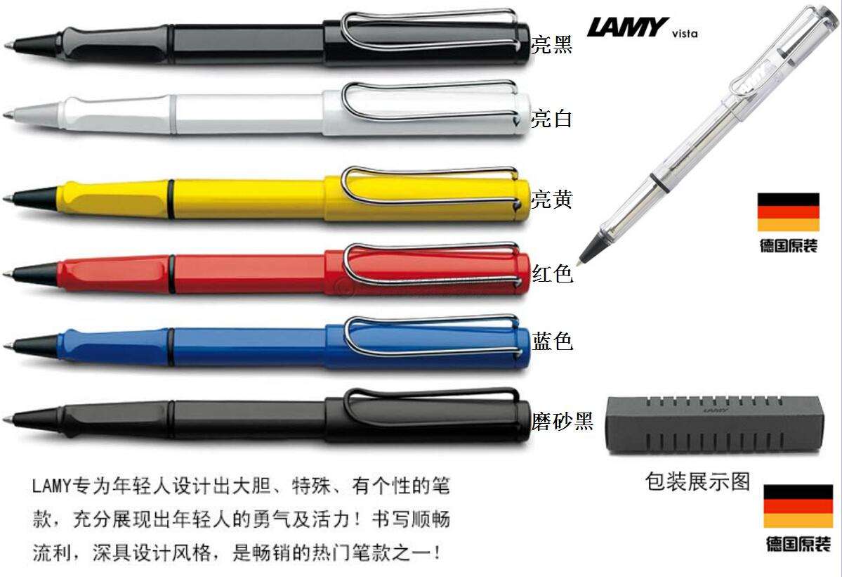 凌美牌鋼筆工廠是成立于上世紀30年代,在目前的鋼筆市場上面與派克筆、萬寶龍筆呈現三架齊驅的態勢,凌美牌鋼筆設計獨特,顏色艷麗,適合年輕一代使用,目前凌美的發展客戶群體也逐漸向年輕化客戶轉移!LAMY 專為年輕人設計出大膽、特殊、有個性的筆款,充分展現出年輕人的勇氣及活力,ALSTAR恒星系列,筆身以全鋁金屬打造,流線外表與洗煉的質感,充分突顯人體工學的特性,此款的特色在于前端為透明筆殼,可清楚看見筆內的零件,新穎的設計,廣泛頗受年輕人的喜愛。它的筆芯質量在品牌筆當中屈指可數:1油性筆芯,不易揮發,防水性佳,使用時間長能夠連續書寫8公里,高出其他品牌書寫量40% 實用,使用時間長,2水性筆芯,用于簽支票及正式場合的書寫,滿足專業性的需求連續書寫4.5公里,是其他品牌書寫量的兩倍,使用時間長!凌美牌鋼筆是您不錯的選擇,贈予客戶非常適合,體積小,價格實惠,便宜攜帶!