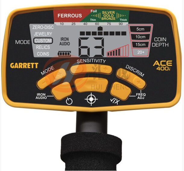 蓋瑞特ACE400i包括Garrett的獨jia探測技術和專利的歧視特性。該技術有兩個指標尺度,讓你看到探測器的歧視設定(下表) ,以及每個檢測到的目標(上表)的分析。 ACE 400i還具有增強的鐵分辨率(從垃圾鐵在雜亂的區域分離理想的目標額外的分辨率)。