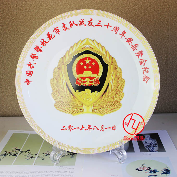 景德鎮合元陶瓷廠專業生產陶瓷擺盤,家居擺設裝飾品陶瓷擺盤。陶瓷擺盤的規格有15cm-40cm不等。瓷質有白瓷、高白瓷、骨質瓷等不同質量的瓷質??梢愿鶕蛻舻囊蠖ㄗ霾煌幐?、不同瓷質、不同畫面的禮品陶瓷白案。一塊陶瓷擺盤配置一個高檔瓷器錦盒包裝和一個盤架就是一套精美的陶瓷禮品了,適合于各種大型紀念活動禮品、家居裝飾品、校慶活動禮品、慶典活動禮品。本廠生產的手繪新彩陶瓷擺盤,色彩豐富,款式眾多。圖案新穎,寓意非凡。適合各種商務禮品的贈送??梢越邮苄∨慷▎?。我們自己生產,時間易把握,可以承諾在保證質量的前提下做到最短時間內交貨。